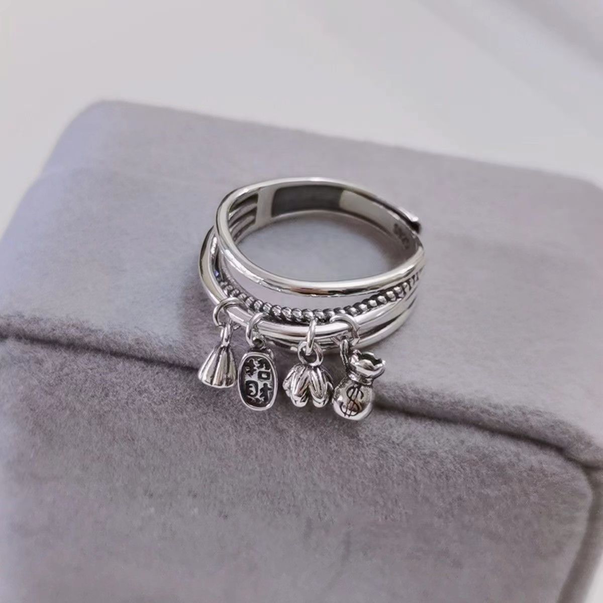 蓮の花の指環蓮の蓬はお金の袋にぶら下がって、銀色の生きている口の指の指輪の復古の指輪のS925銀の古風の納福を招きます。