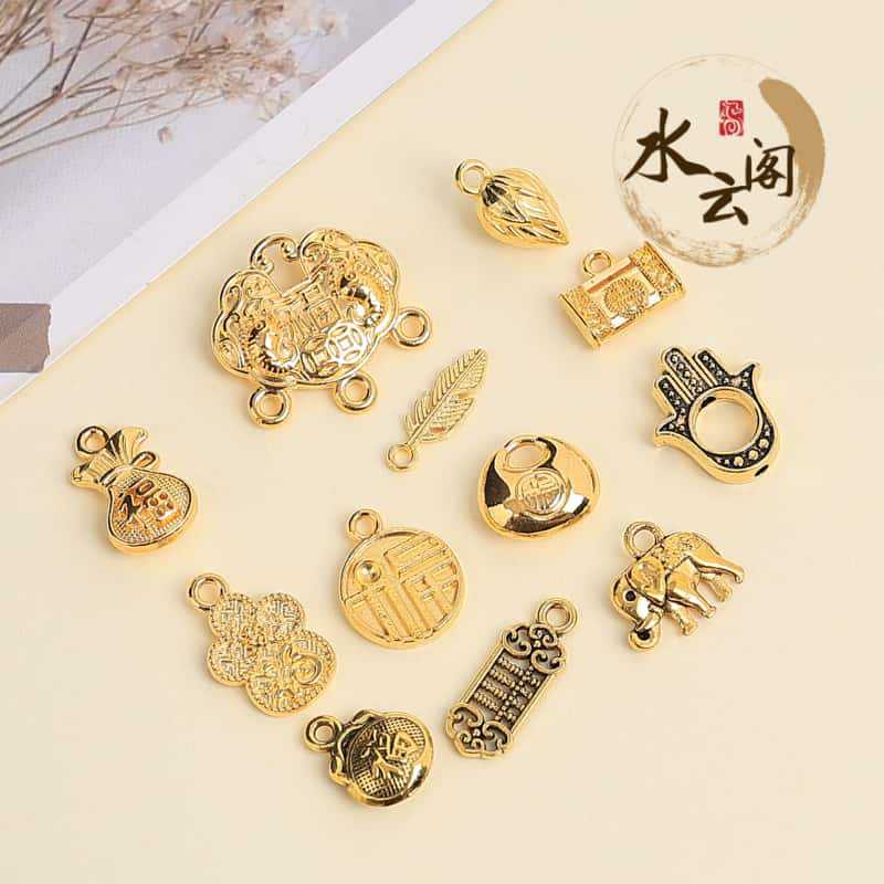 古法唖金通孔四葉草福大孔径銭袋福袋合金部品diyアクセサリーブレスレット