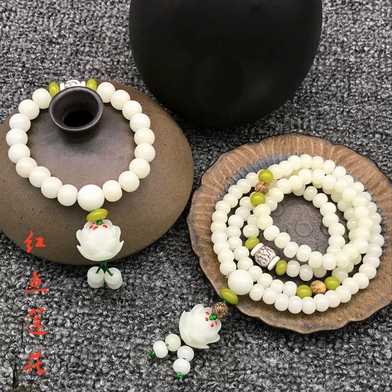 菩提根ブレスレット卸売白翡翠菩提蓮 108 ビーズロザリオブレスレット文具菩提ブレスレット風景ジュエリー