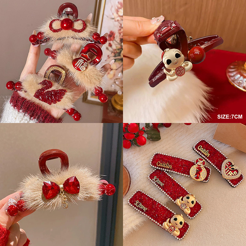 新年の赤いダイヤモンドを入れて女性をつかみます。2025年の春節のヘアピンは後頭部を飾ります。