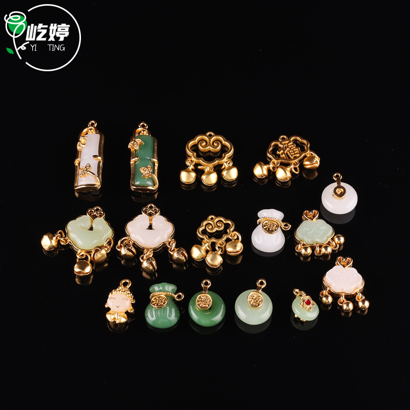 中国風古法金沙合金滴油小ペンダントdiyビーズブレスレットネックレスアクセサリー材料45