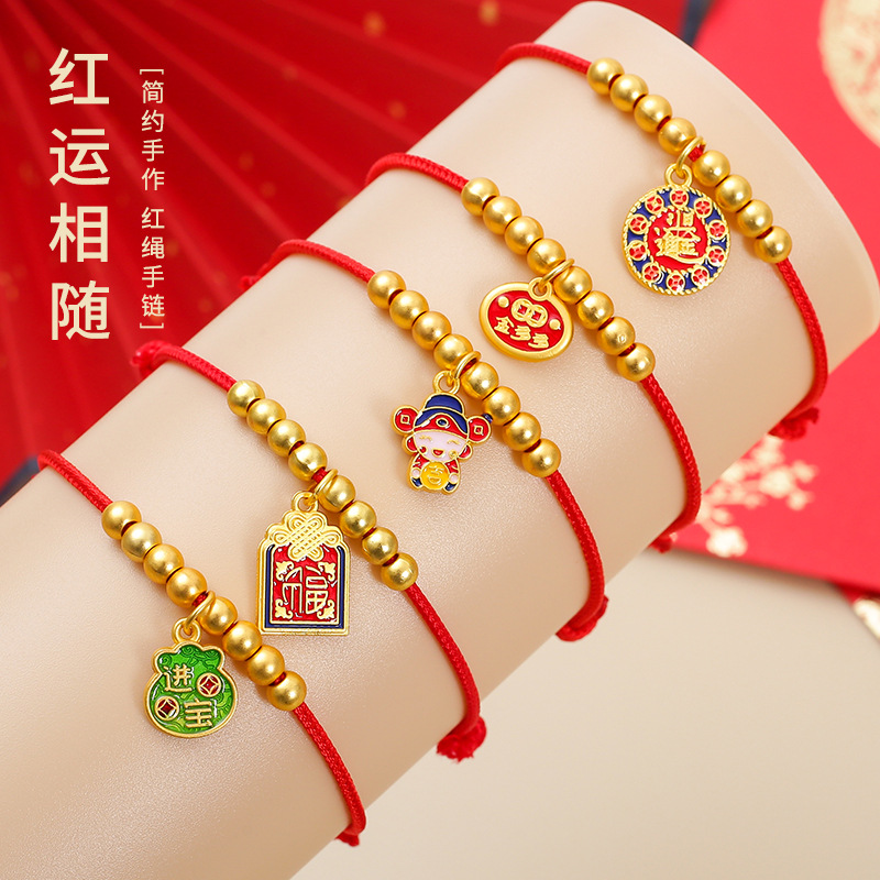 金店同型電気めっきダンカン金部品赤縄ブレスレットエナメル彩小財神福袋赤手縄端午節プレゼント