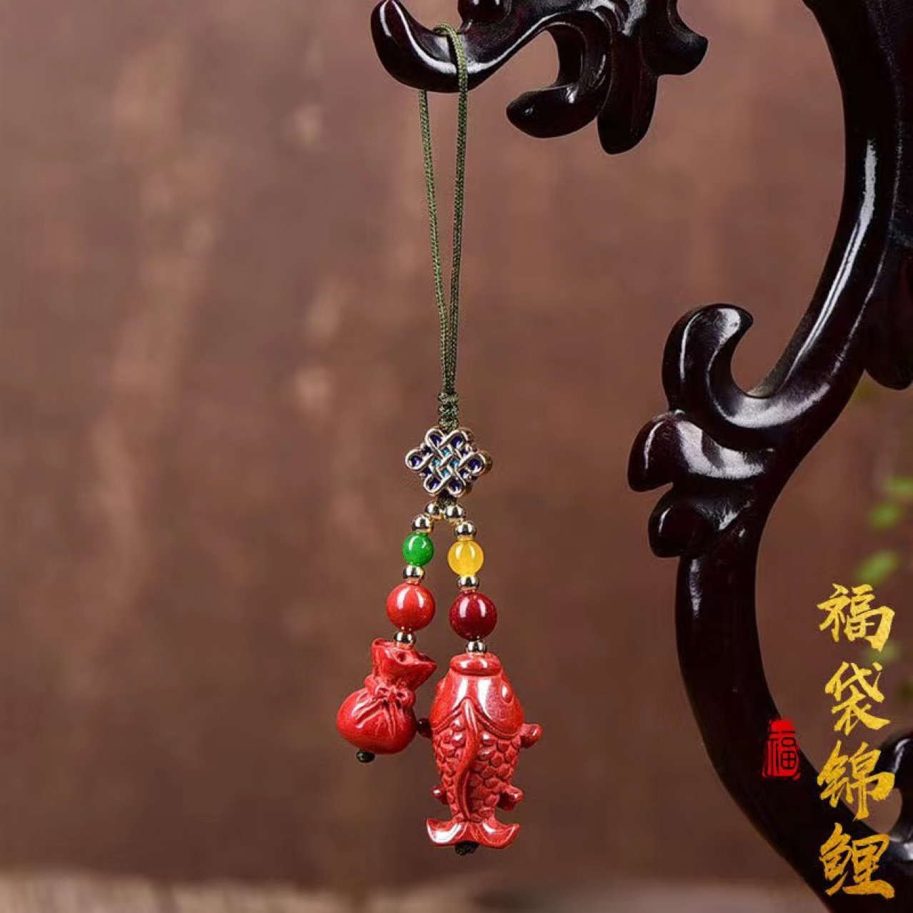 インペリアルサンドフォーチュンバッグマネーバッグ携帯電話チェーン底内容赤辰砂鯉携帯電話ペンダントストラップUディスク小さなペンダント