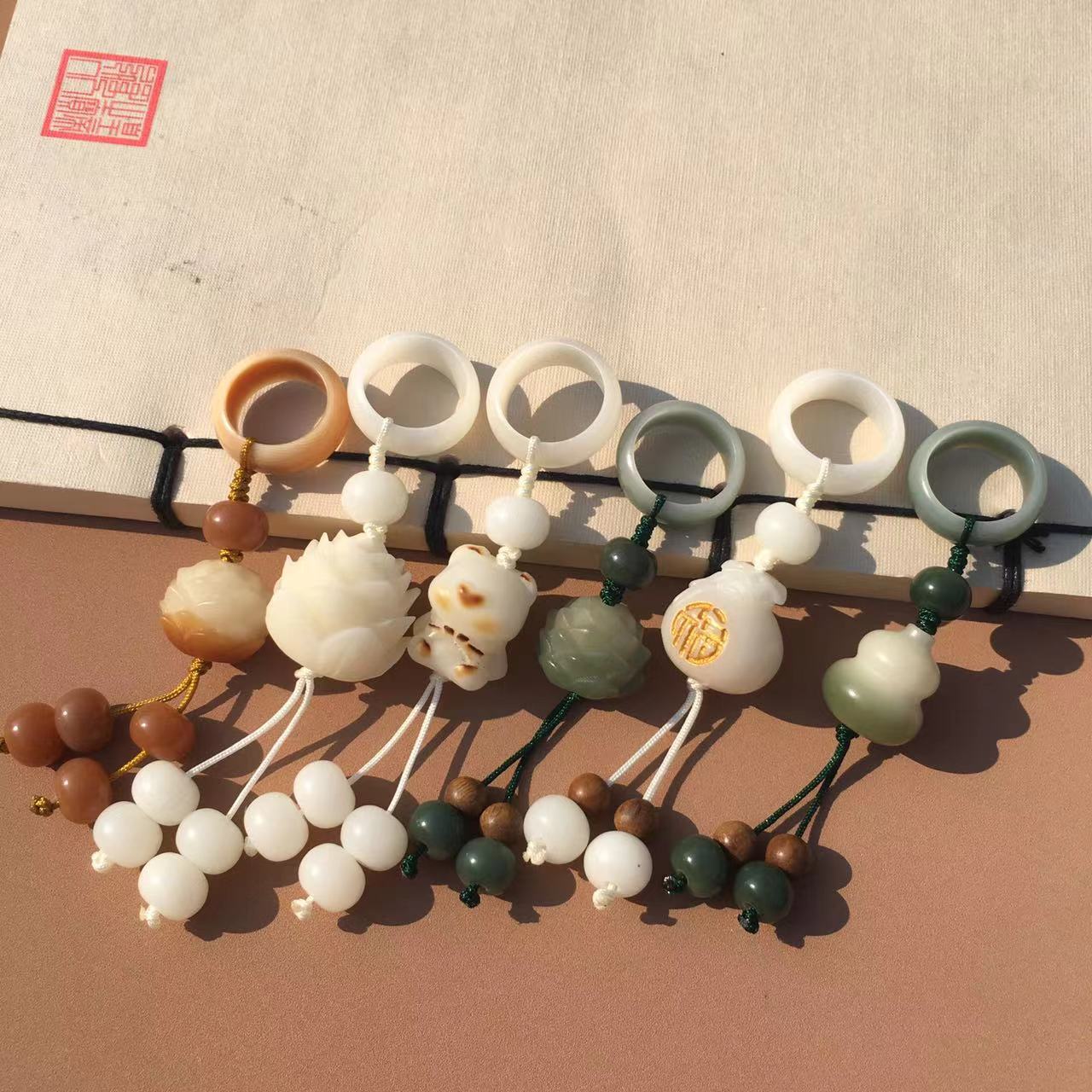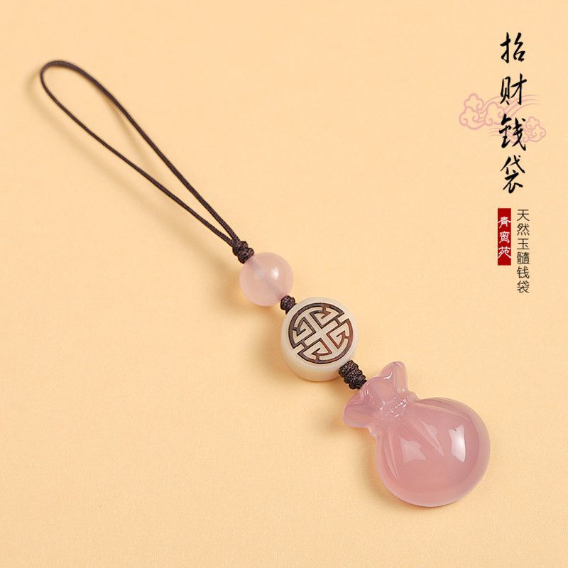 招財銭袋ストラップ天然玉髄玉携帯チェーンペンダント文芸風自動車キーホルダーu盤ストラップ女