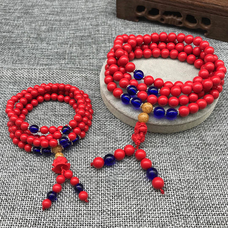 108個の赤い朱砂のブレスレットの蓮の花が、多くのサークルの本命年の手串観光地区の露店活動の贈り物です。