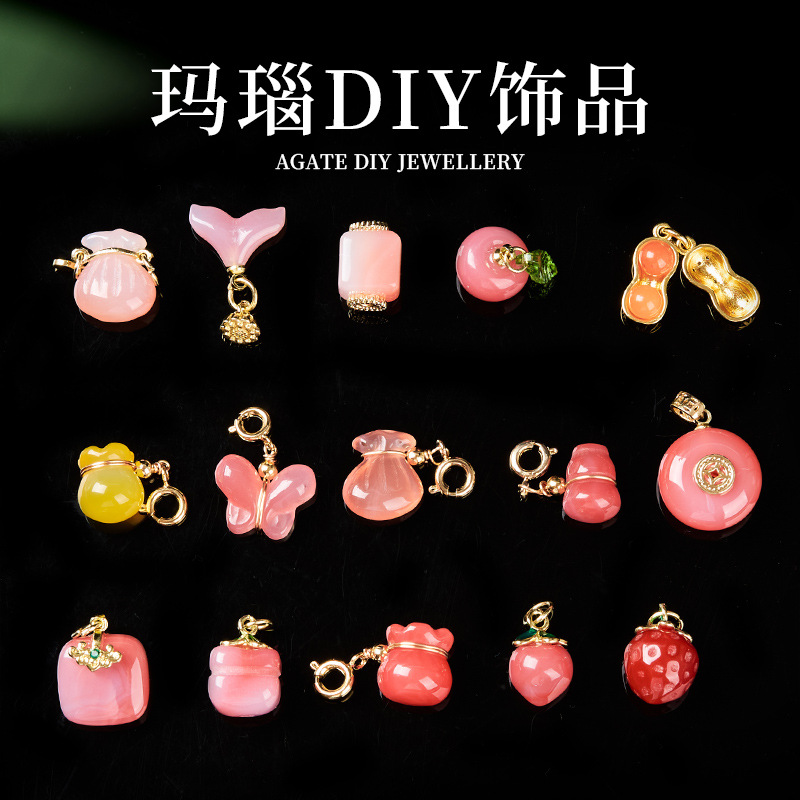 粉塩源瑪瑙の玉の散珠の彫刻の小さい桃の平安はペンダントを掛けてdiyのブレスレットの鎖骨のペンダントの装飾を散らします。