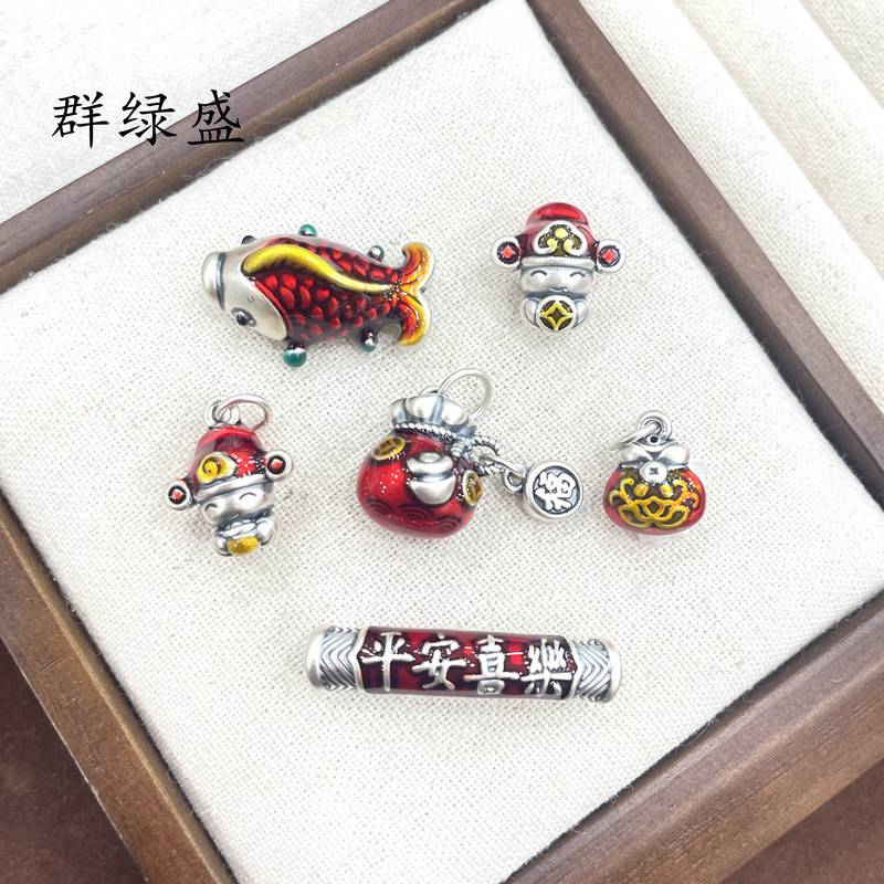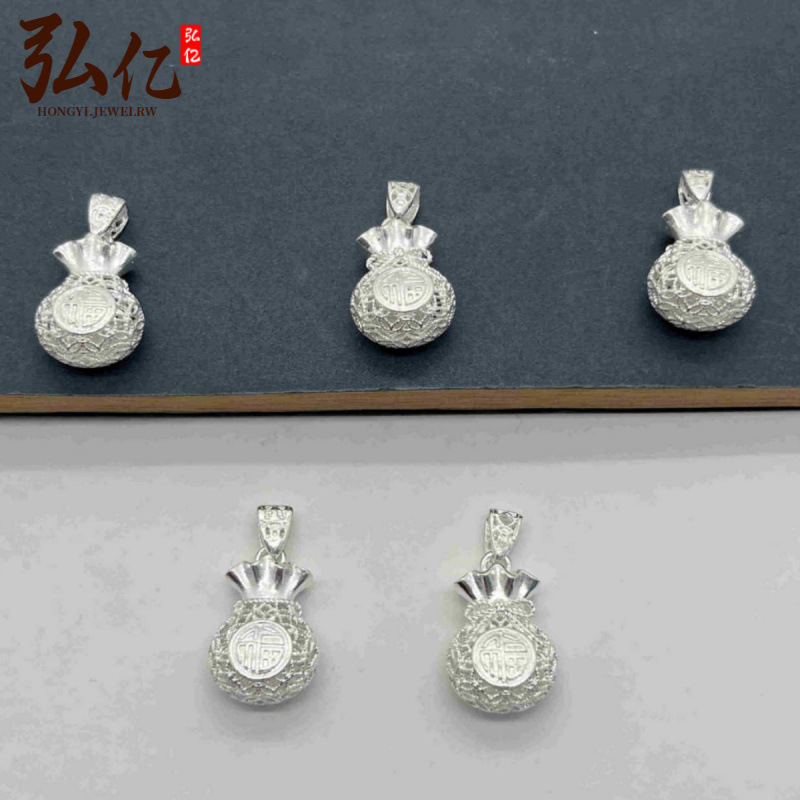 群緑盛s999足銀3d財神吊件銭袋ストラップdiy手作りネックレス手串編み散珠部品