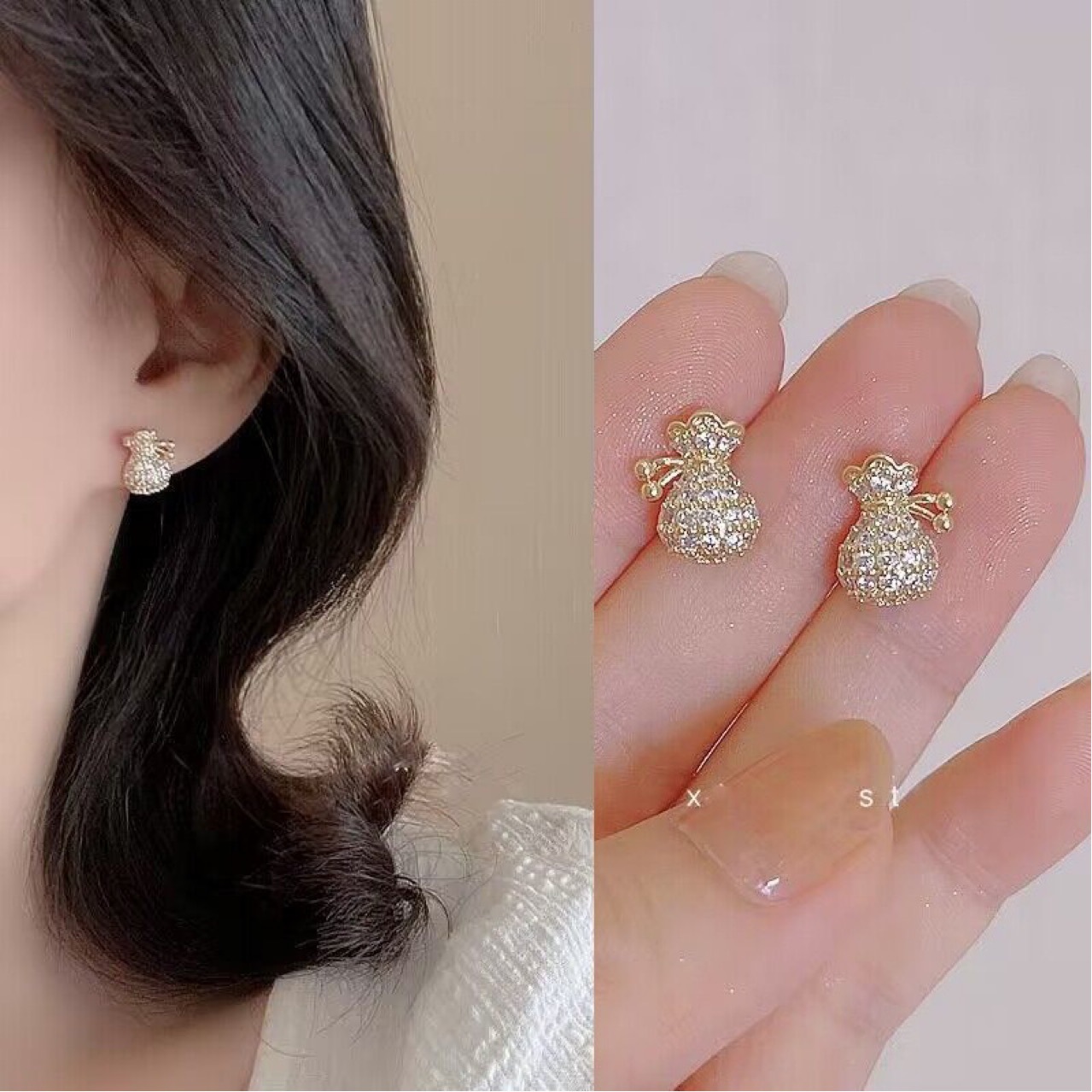 絶妙でコンパクトなマネーバッグイヤリング、ダイヤモンドがちりばめられたユニークなデザイン、女性向けのゴールデンセレブの多用途イヤリング