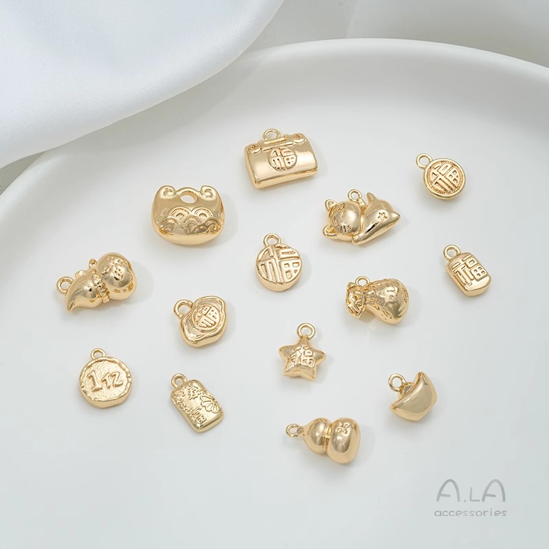 保色14K包金福字吊牌元宝五角星招财猫葫芦锁国风吊坠diy饰品配件