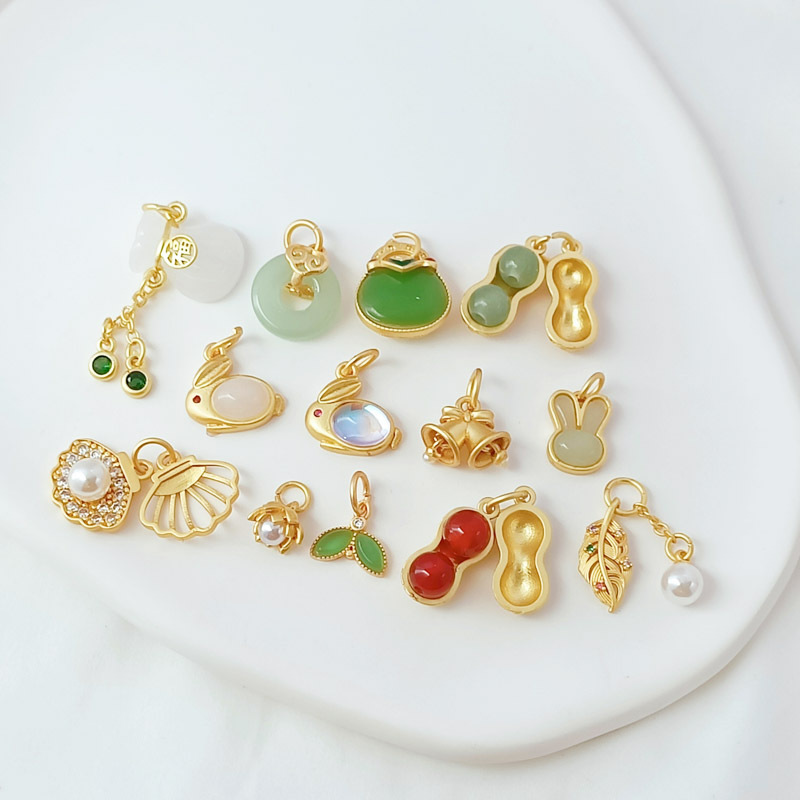 古法金の部品は玉の落花生のウサギの頭の葉の鈴のホタテの財布のペンダントを入れます。