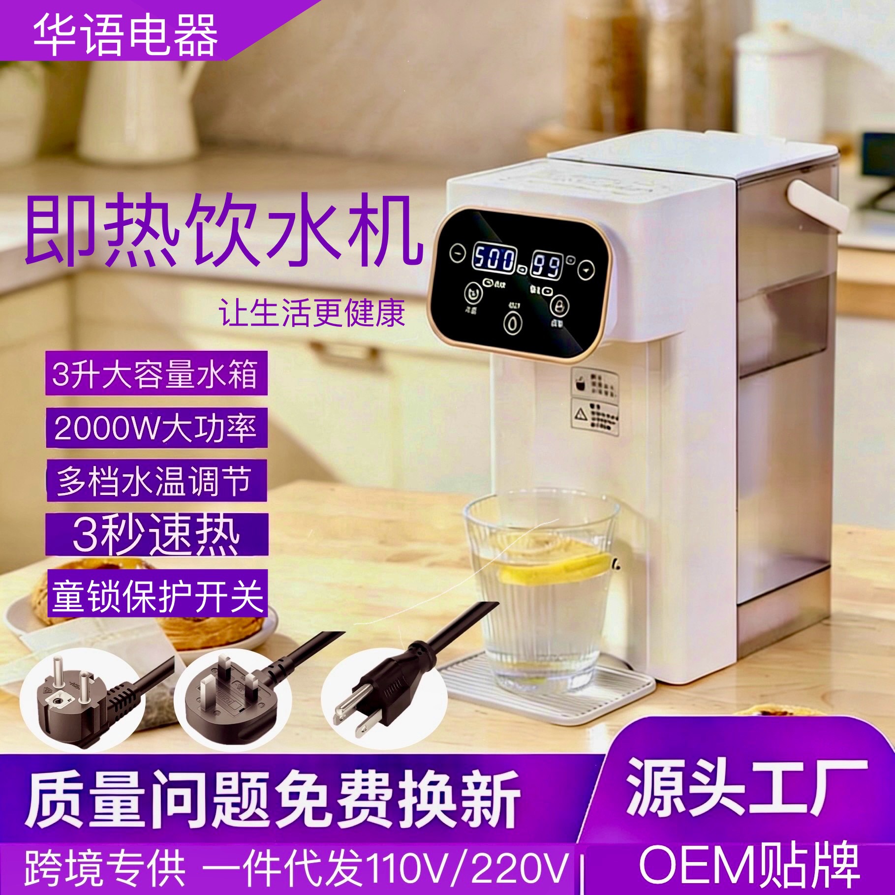 新型華束冷熱卓上浄水器冷凍製熱家庭用対外貿易浄水器美標線欧標線は決まっている