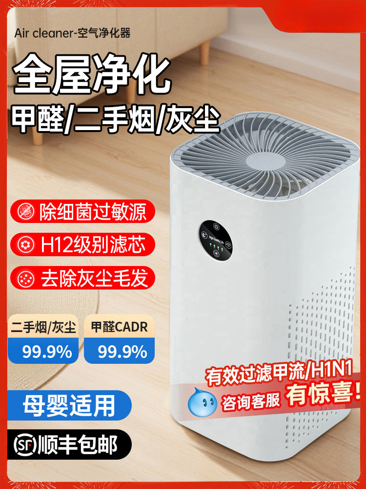 ダブルインテーク空気清浄機家庭用ホルムアルデヒド副流煙臭屋内猫毛吸引マイナスイオン清浄機