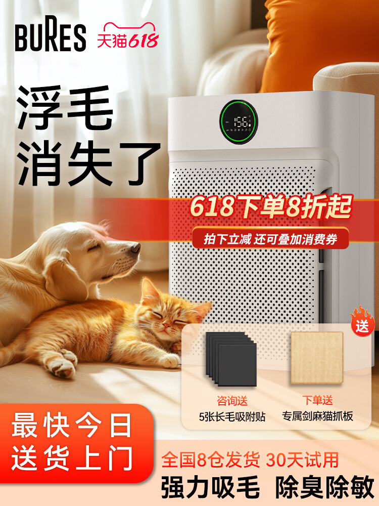 Bures 毛吸引ペット空気清浄機全自動猫毛吸引アレルゲン消臭消毒清浄機