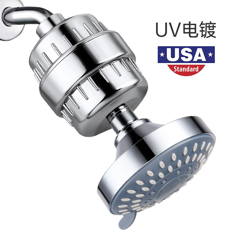 欧米越境貿易専用15段階20層シャワーフィルター、残留塩素除去、UV電気メッキ、入浴用浄水器セット