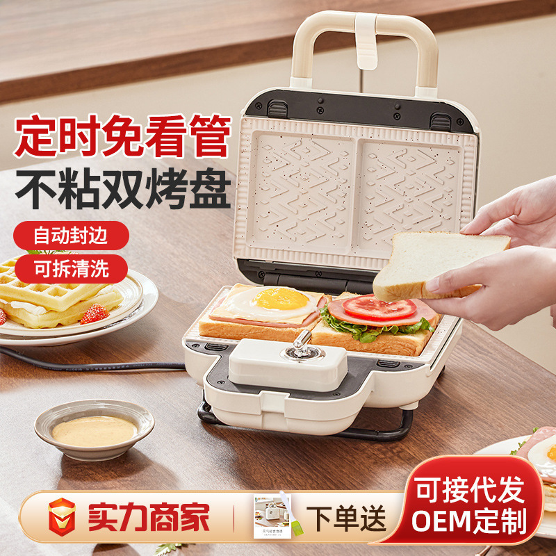 煌寧双盤サンドイッチ朝食機家庭用多機能新型ワッフル軽食プレス機小型トースター