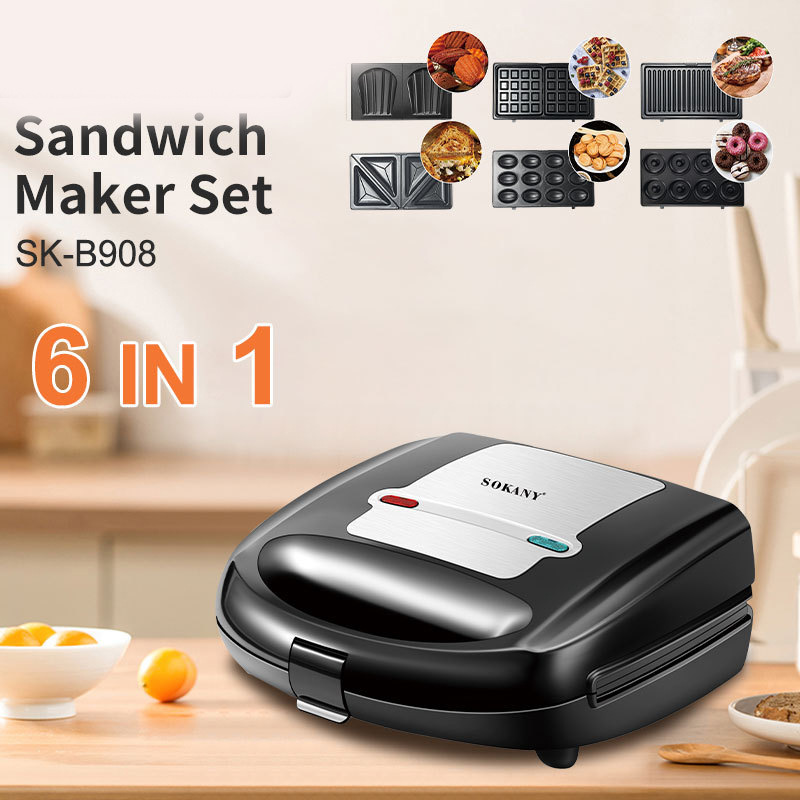 クロスボーダー欧規六合一両面加熱多士炉家庭用多機能焙煎ワッフル機サンドイッチ機