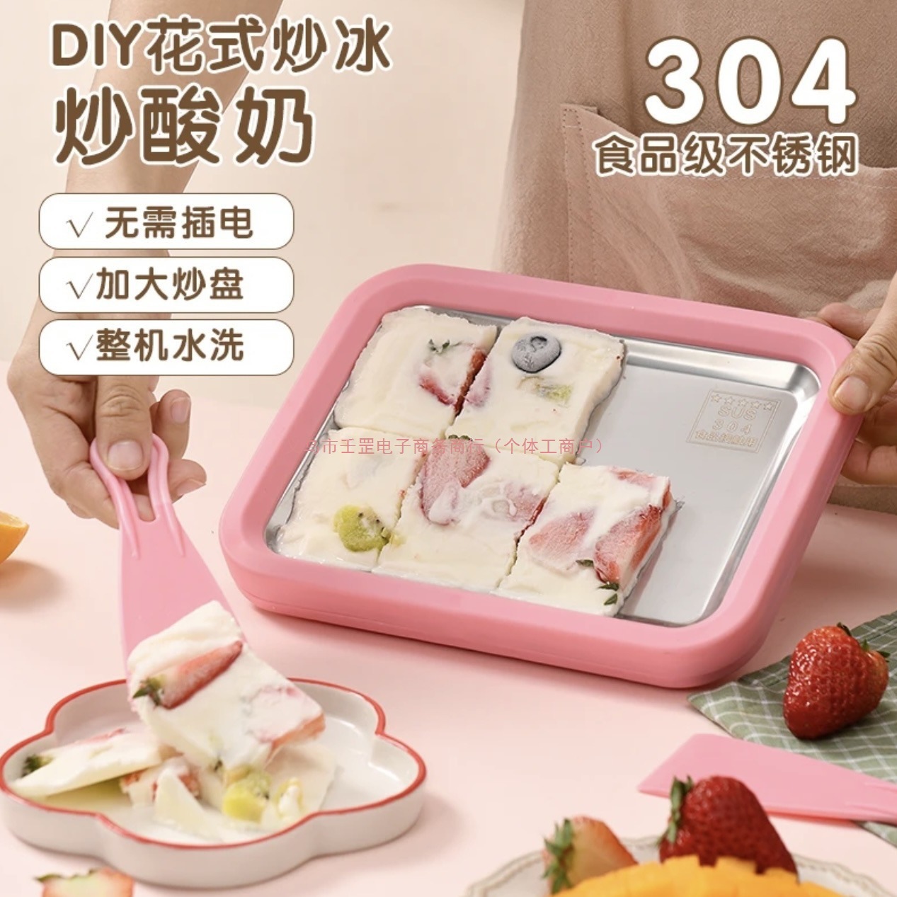 304ヨーグルトマシン、アイスフライドマシン、新しい厚みのある家庭用プラグフリーヨーグルト、子供用アイスフライドトレイメーカー