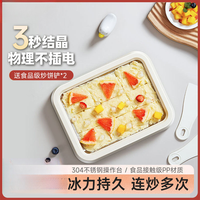 フライドアイスマシン、プラグなしフライドヨーグルトマシン、小型家庭用子供用ミニ冷凍アイストレイ、プラグなし食品グレード工場