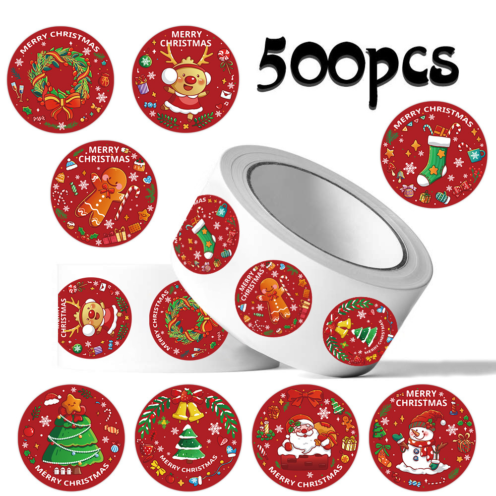 クロスボーダークリスマスステッカーロールステッカー500シールステッカーホリデーギフト包装ハンドブックステッカーDIYカッティングフィルムテープ