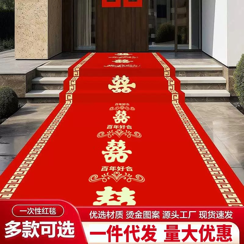 卸売り結婚祝い使い捨てじゅうたん結婚祝い迎賓紅喜字紅じゅうたん結婚式装飾用品50メートル