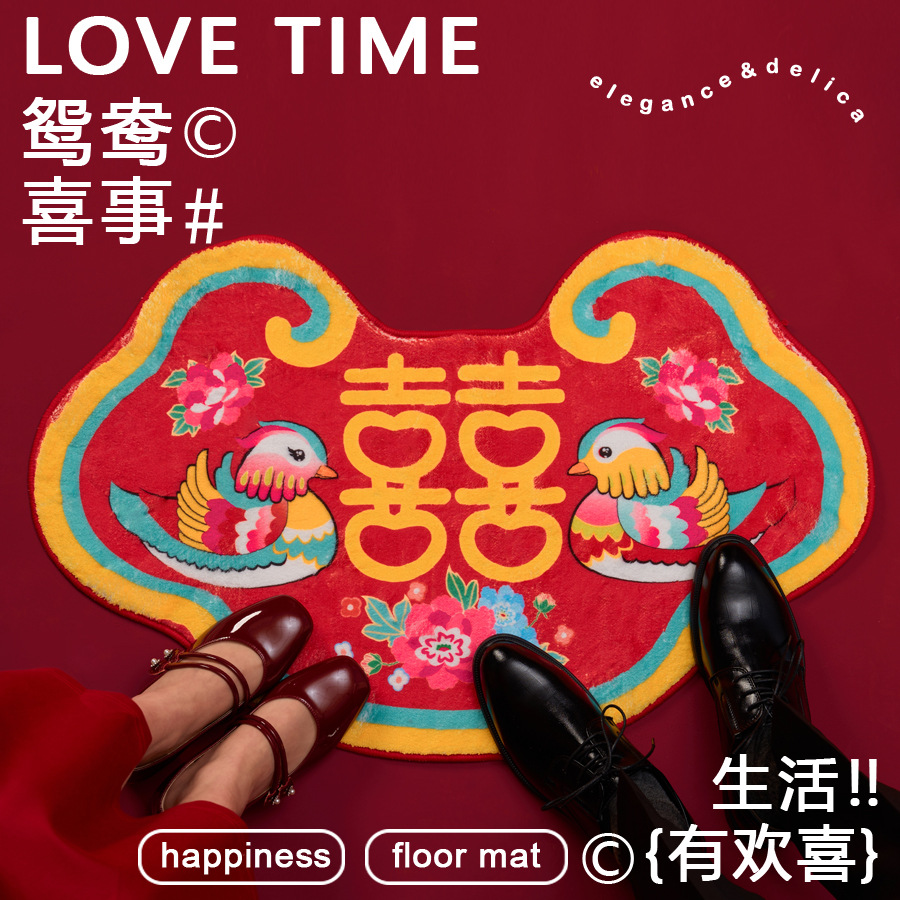 結婚地マット新居装飾家マット結婚式用品喜字じゅうたん寝室客間結婚室装飾マット