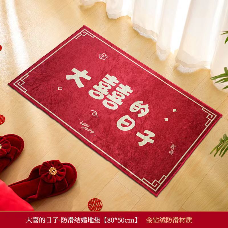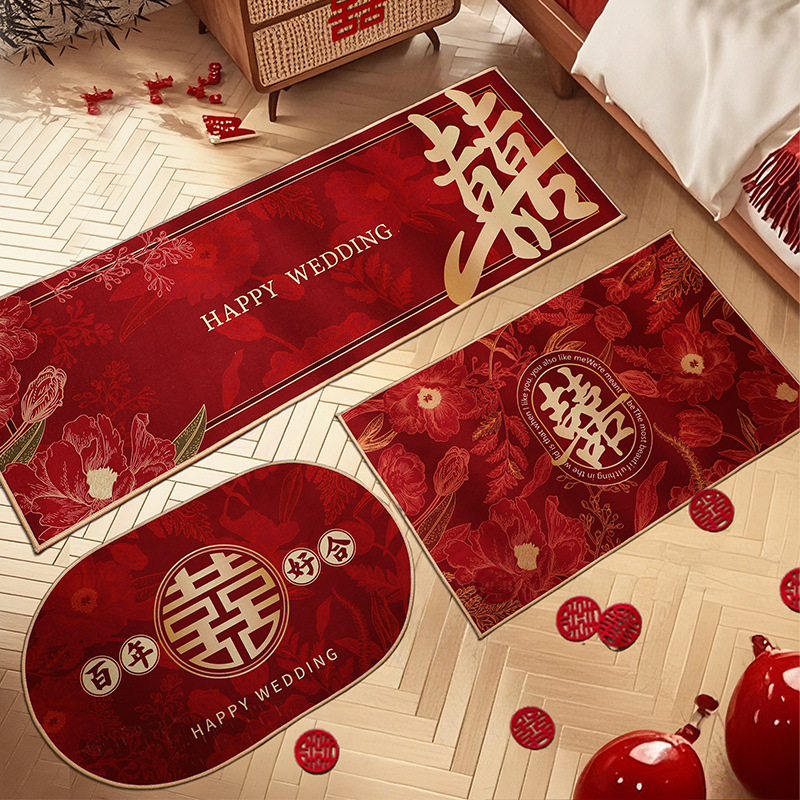 結婚式の部屋の装飾、玄関マット、結婚式用品、玄関の喜字マット、寝室のベッドサイドカーペット