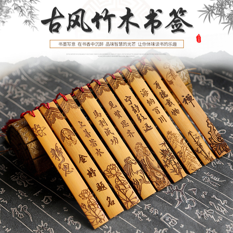 空白のしおりはエナメル底板楠竹レーザー彫刻工場卸売り文創学生竹しおり竹札を絞めた
