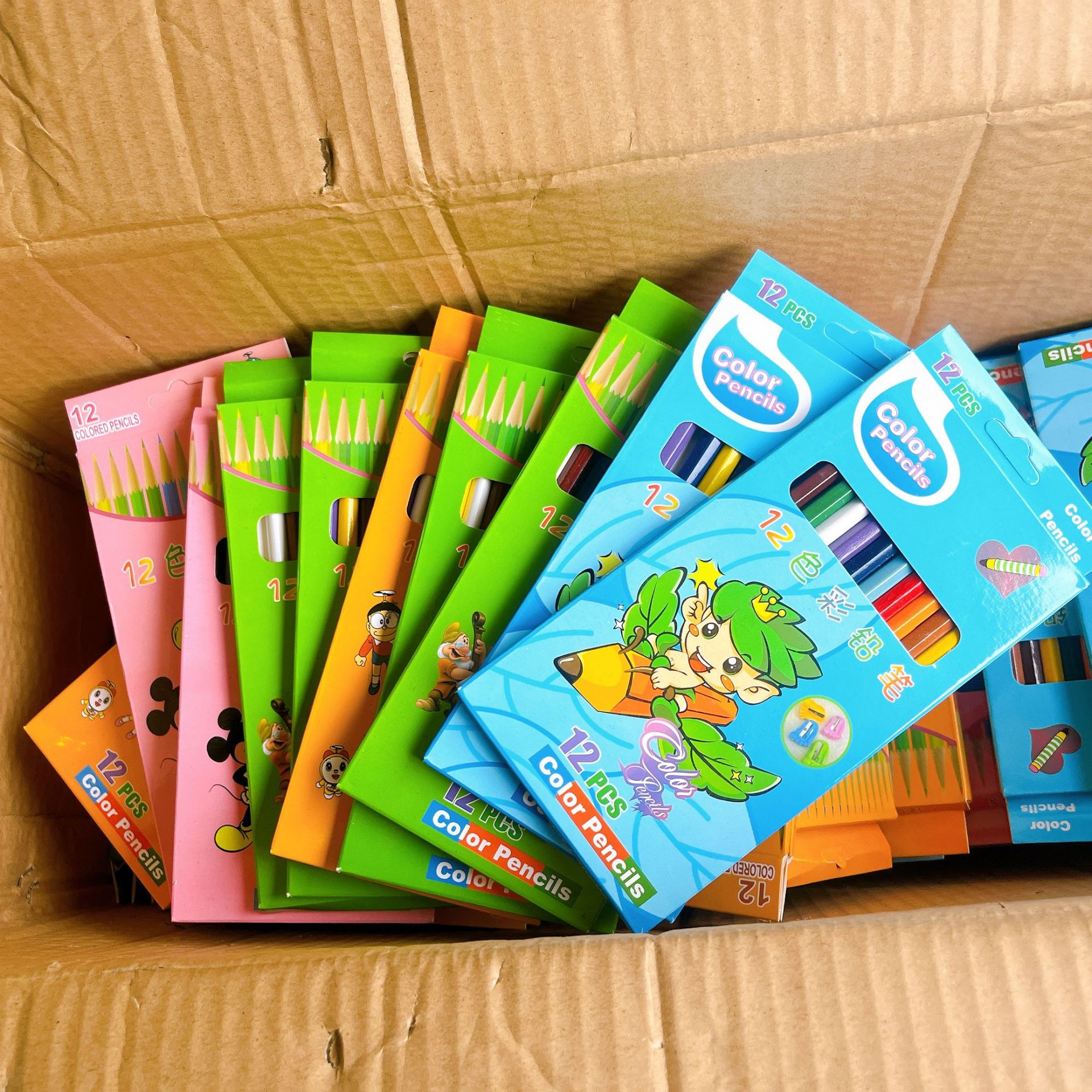 クロスボーダー6/12色24色箱入り色铅笔キッズ小学生バケツ入れ色铅笔絵画道具実木铅笔