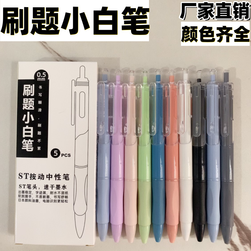st プレス白ペン モランディカラーゲルペン 速乾性学生試験筆ペン 黒ペン プレスボールペン