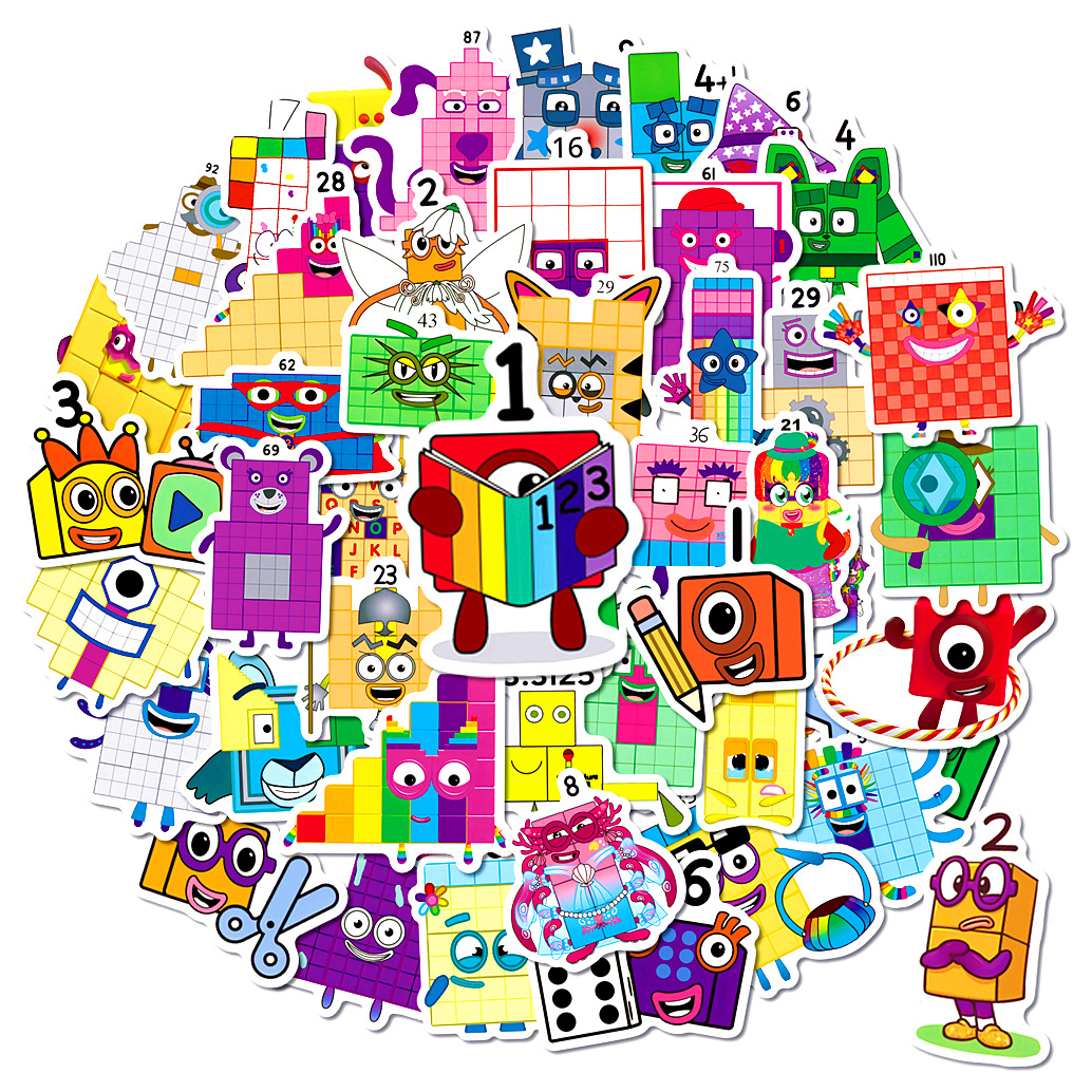 50枚子供啓蒙デジタル積み木ステッカー幼児益智漫画コンピュータ装飾コップ防水ステッカー