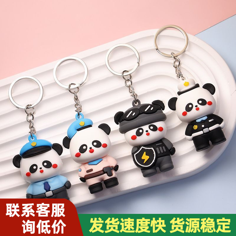 かわいいパンダ警察のキーホルダー漫画バッグストラップpvcソフトジェル立体人形カップルのキーホルダープレゼント
