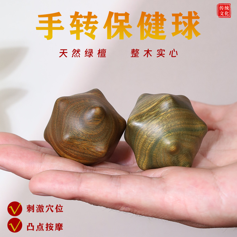 白檀 12 面イカハンドボール、ハンドボール、ヘルスケアボール、ハンドスピナーボール、ツボマッサージボール、無垢材ボール