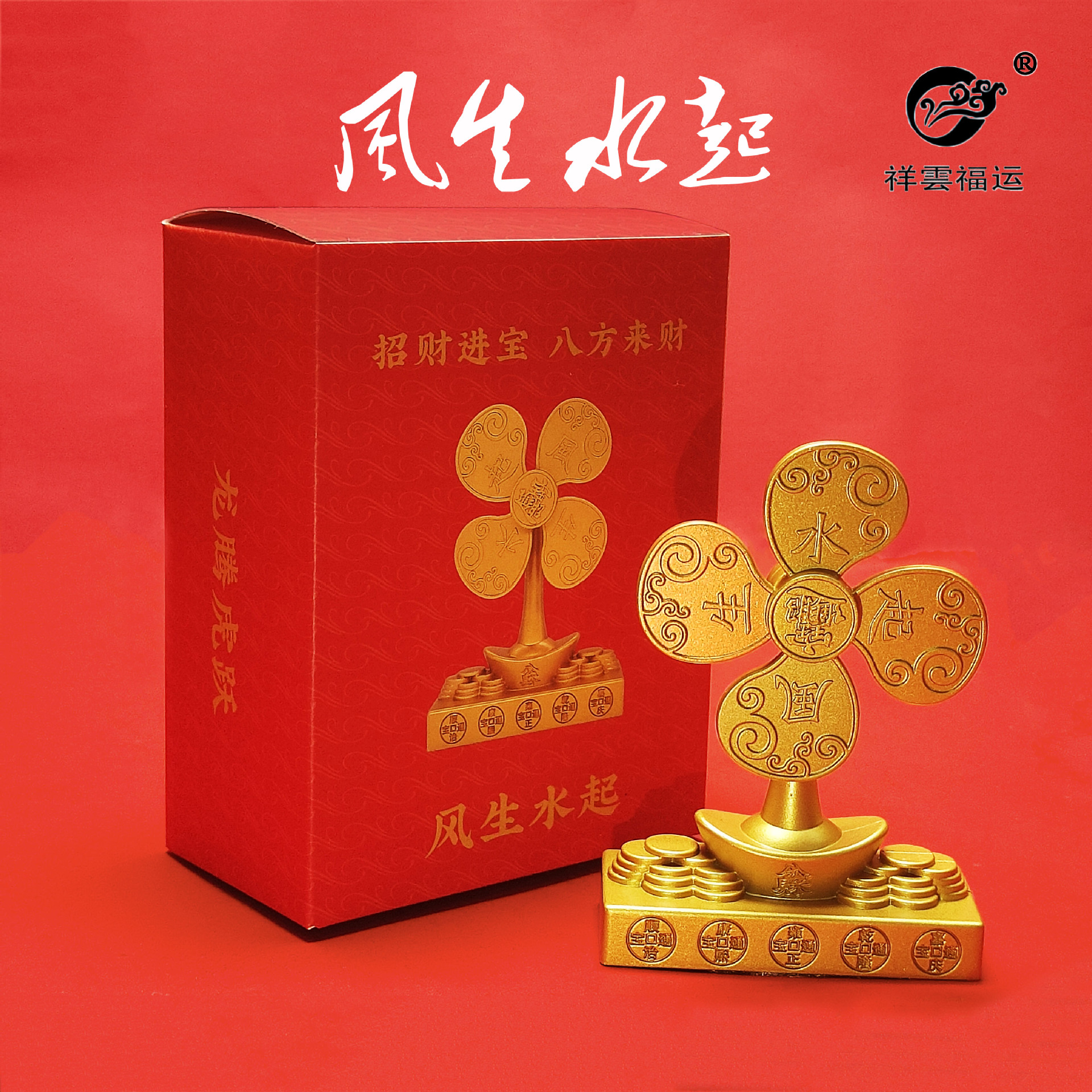 風と水、風車、金属工芸品、元宝、五帝のお金、ホームオフィスの富を引き寄せる装飾品、風水