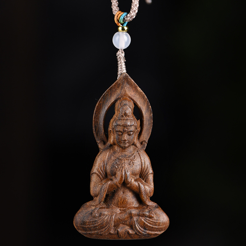 菩薩棋沈香木観音ストラップカップルプレゼント守護ストラップペンダント木彫り透かし彫り小物ハンドルパーツ