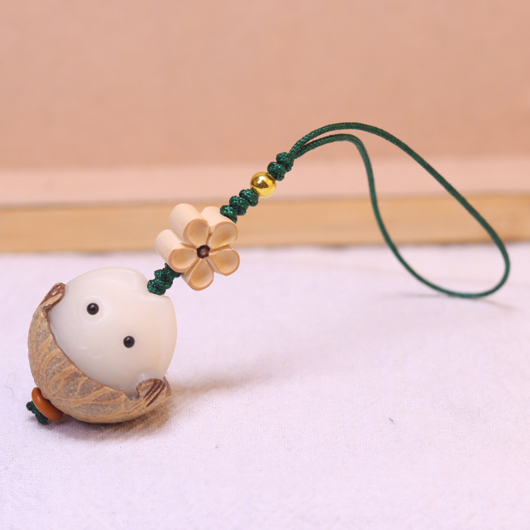 白菩提彫刻皮付き猫のキーホルダー菩提根銭袋のキーホルダー