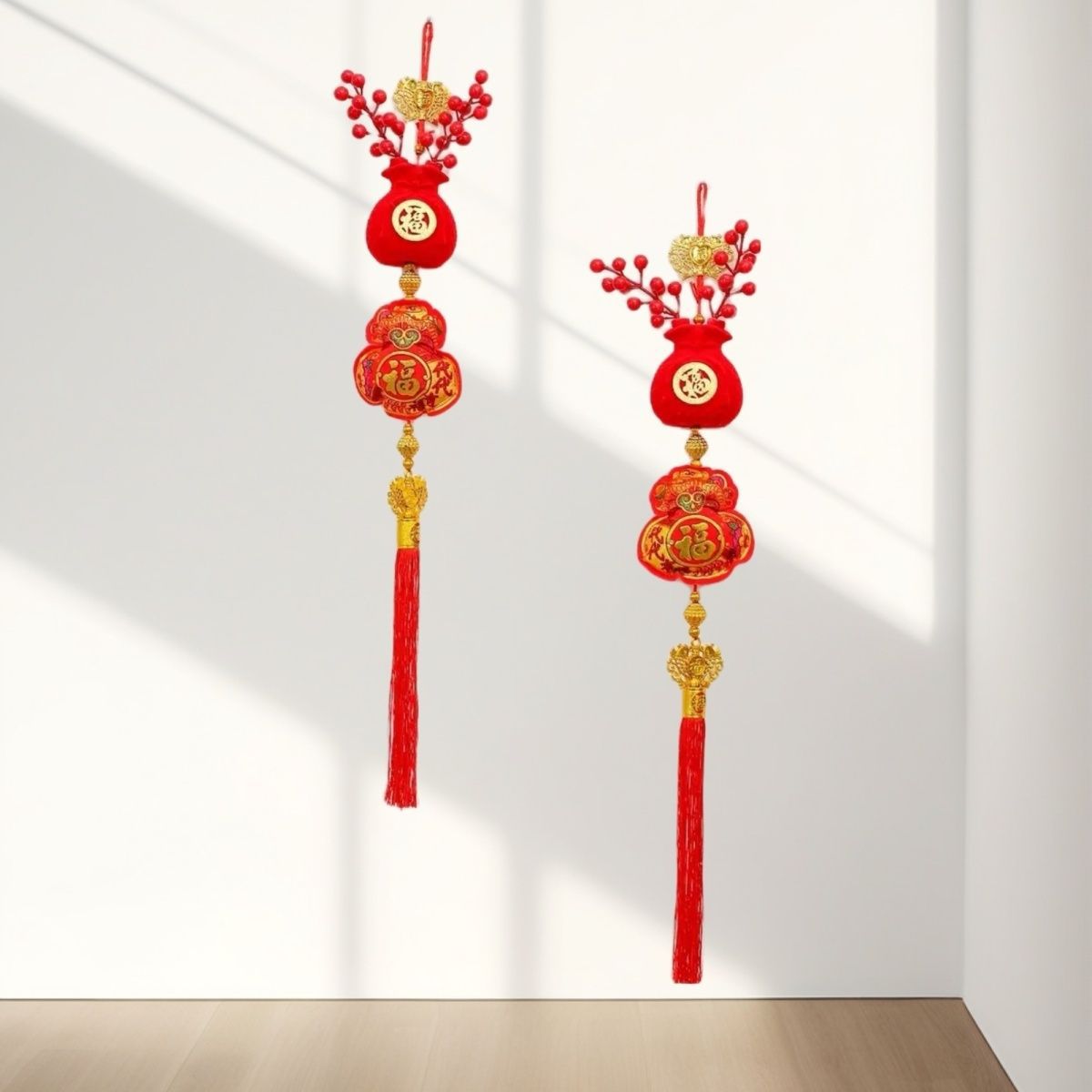 新年飾り物、2026年馬年飾り、干支飾り、赤い唐辛子、爆竹、福袋、春節