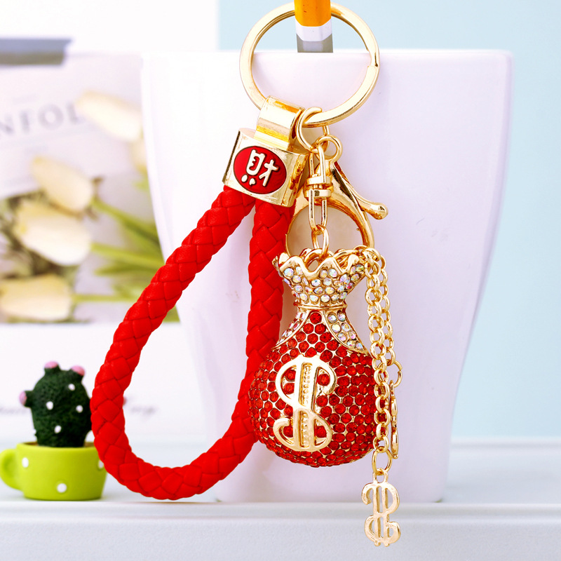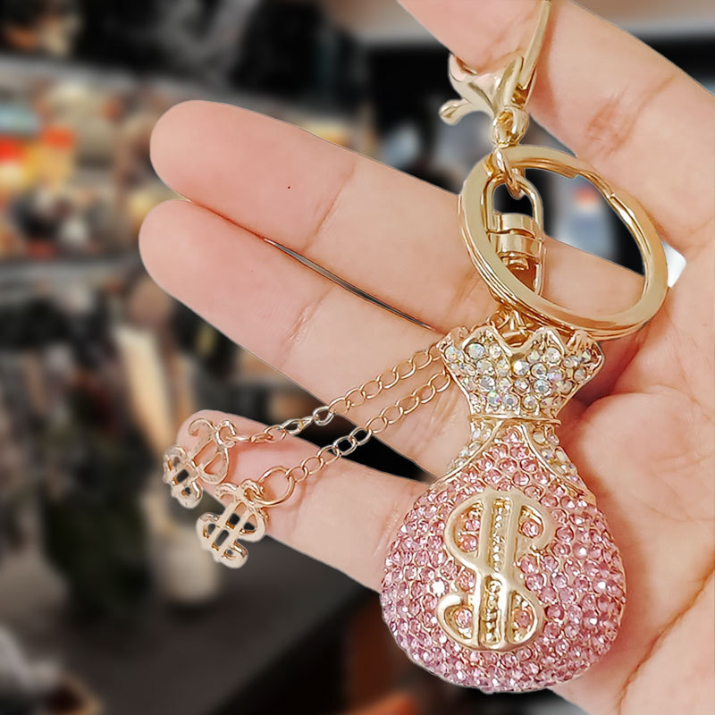 クリエイティブギフトクリスタルラインストーンマネーバッグキーホルダーレディースバッグペンダントメタルジュエリーギフト工場ペンダント