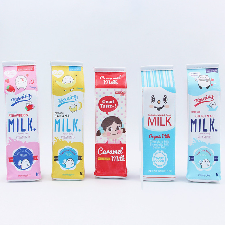 新しい学生の漫画のミルクの箱のペンの袋のかわいい創意の大容量の小学生の文房具の箱の女性の簡単な筆箱