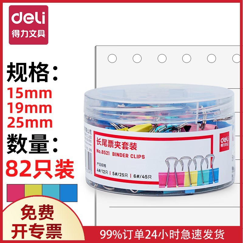 得力8521長尾クリップセット82個セットカラー長尾クリップアリ尾クリップクリップファイルオフィス