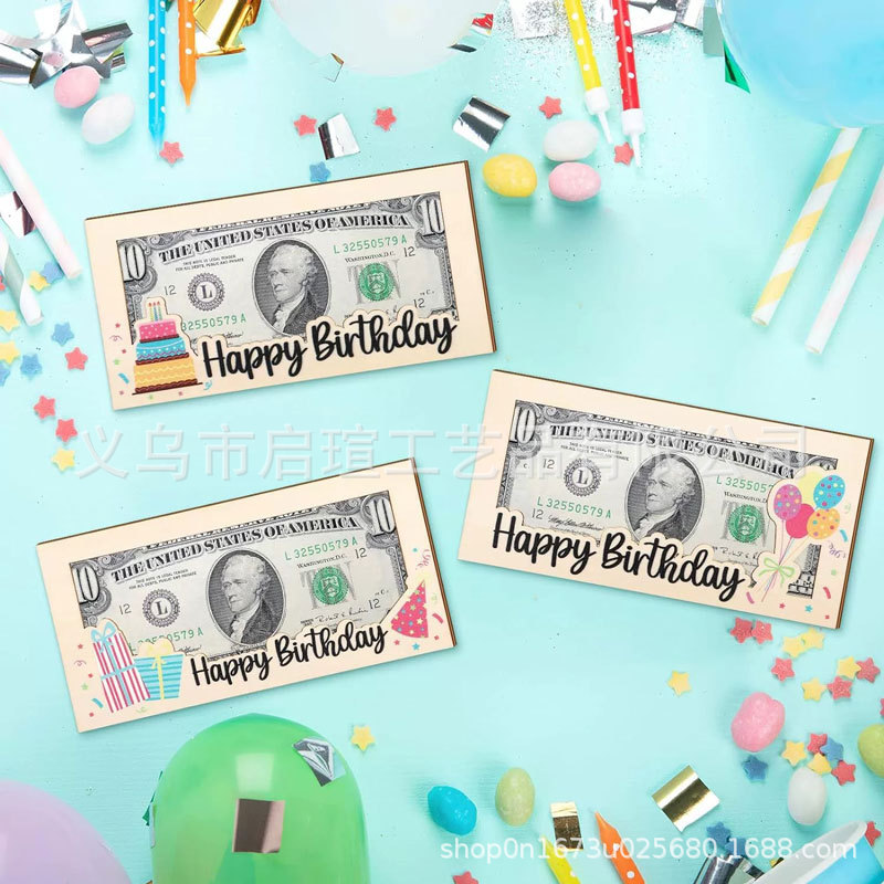 DIY 木製誕生日パーティーギフトマネークリップグリーティングカードギフトクリップ現金封筒誕生日パーティーギフト装飾