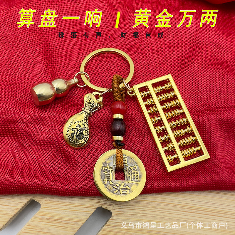 イベントそろばんキーホルダー十二支中空辰砂真鍮ひょうたんペンダント富袋五帝マネーキーホルダー
