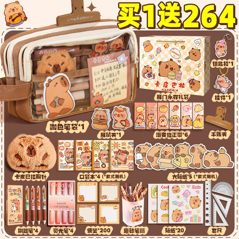 カピバラのペンケース女の子大容量透明文房具ケース女の子子供学生铅笔ケース文房具セット