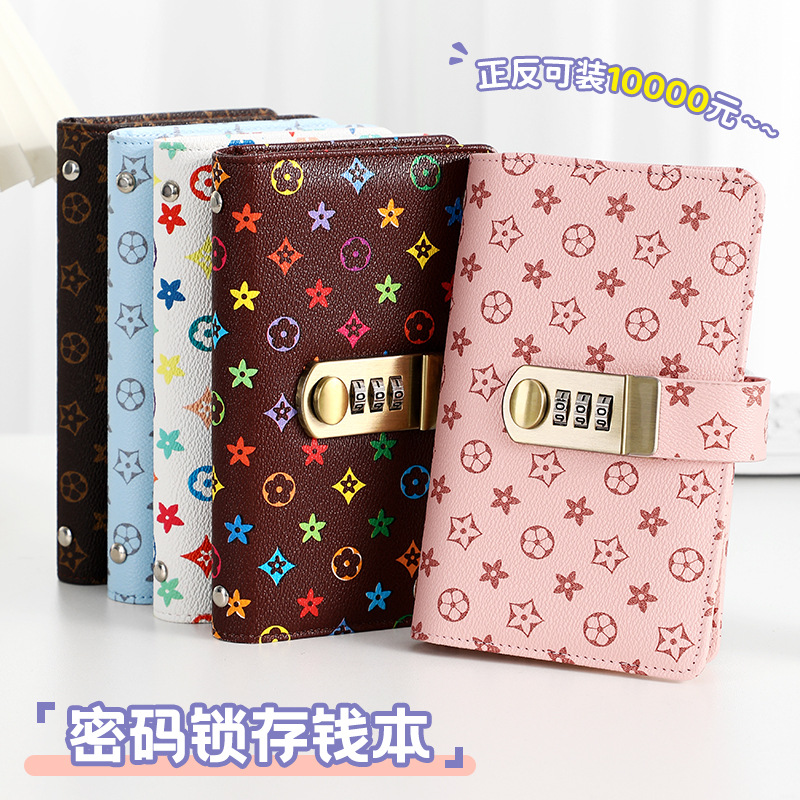 2025年新型金庫ロック式現金貯金帳、貯金簿、財務管理財布、大容量収納帳