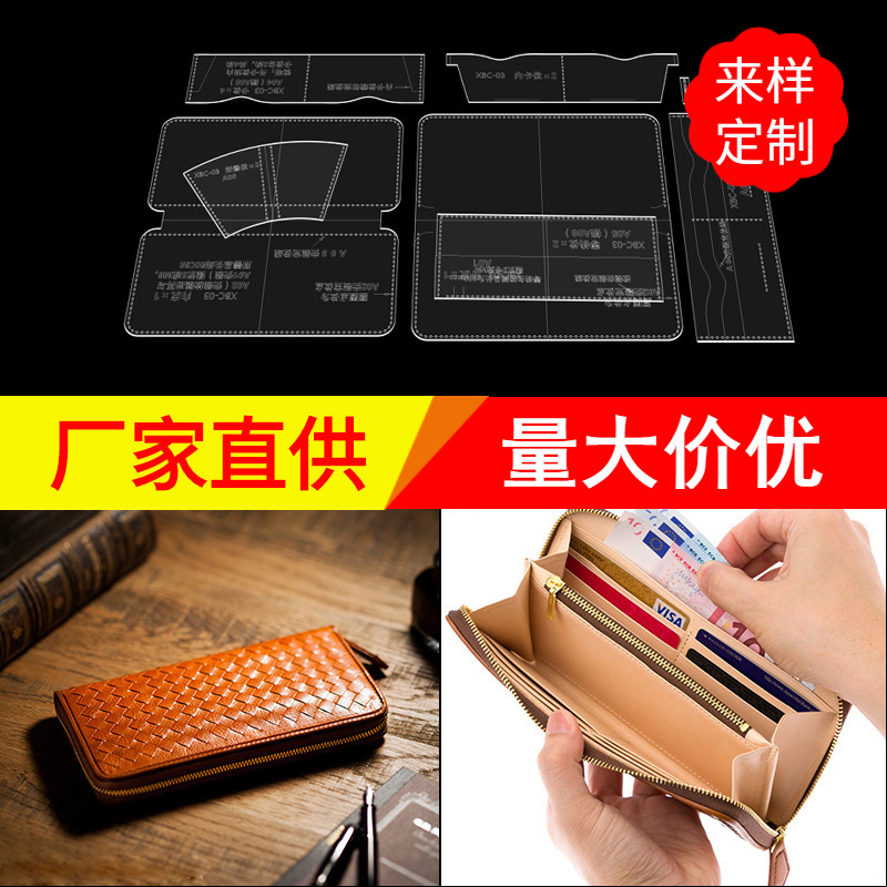 手作り革具diyデザイン制作紙格子紙のような長い財布財布携帯電話バッグアクリル版図面
