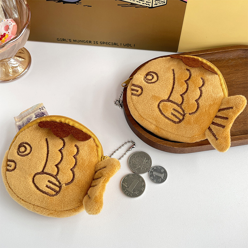 かわいいぬいぐるみ鯛焼き小銭入れイヤホン口紅コインケーブル小魚バッグキーホルダー卸売り