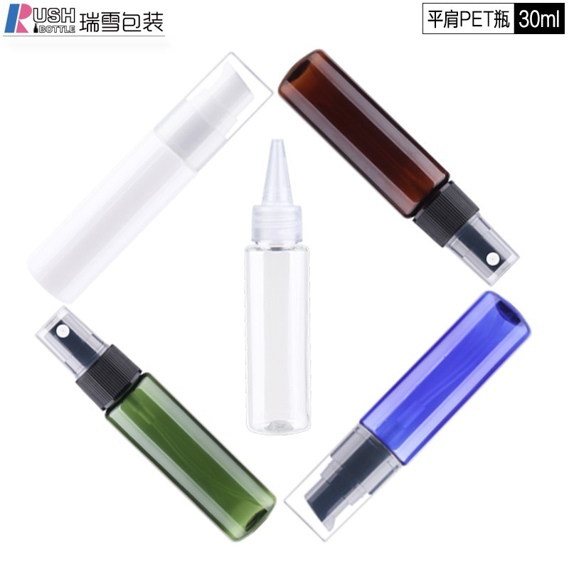 PET30ml フラットショルダープラスチックボトル小型スプレーボトルスプレーボトル化粧品ローションボトル旅行ポータブル詰め替え空ボトル