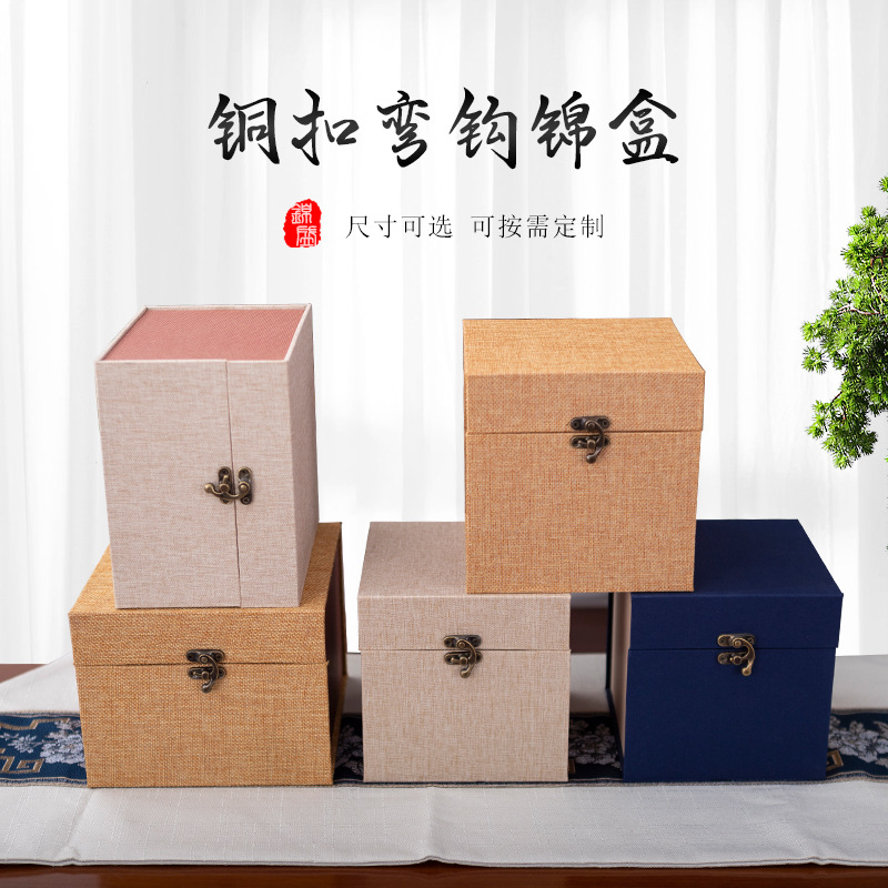 メーカー直供麻布錦箱紫砂壺茶器礼箱印鑑包装礼箱陶磁器綿麻布銅ボタン錦箱