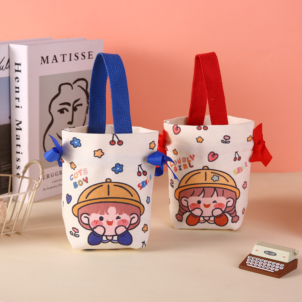 在庫あり 可愛いキャンバスバッグ ハンドバッグ ギフトバッグ お土産収納バッグ ポケット キャンディバッグ 小さいサイズのリンゴ用