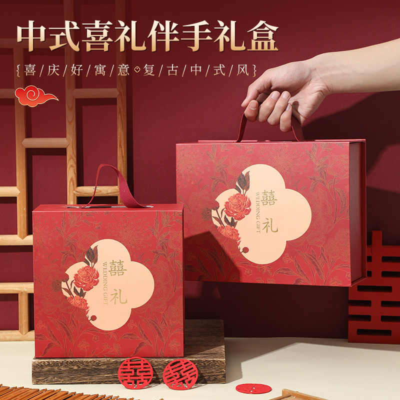 中国風の結婚祝いギフトボックス、正方形の持ち運び可能な高級感のある個性的なギフト、結婚式のゲストへのお返しギフトボックス