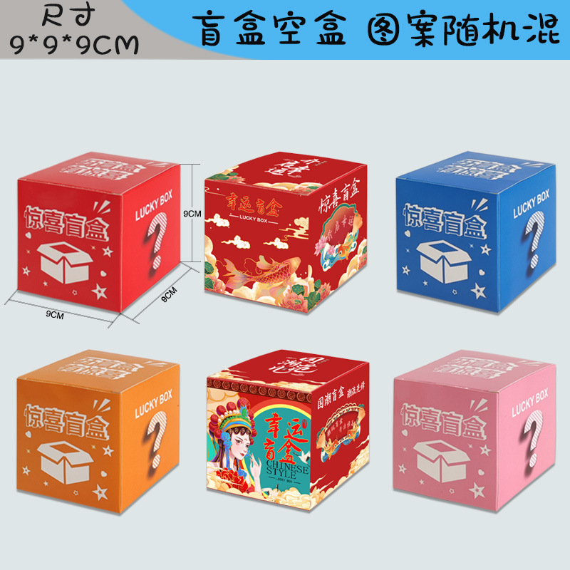 ブラインドボックスの空き箱の卸売りの小さいサイズのかわいい幸運な子供の日の潮は驚きのネットの赤いサイズの包装箱を遊びます。